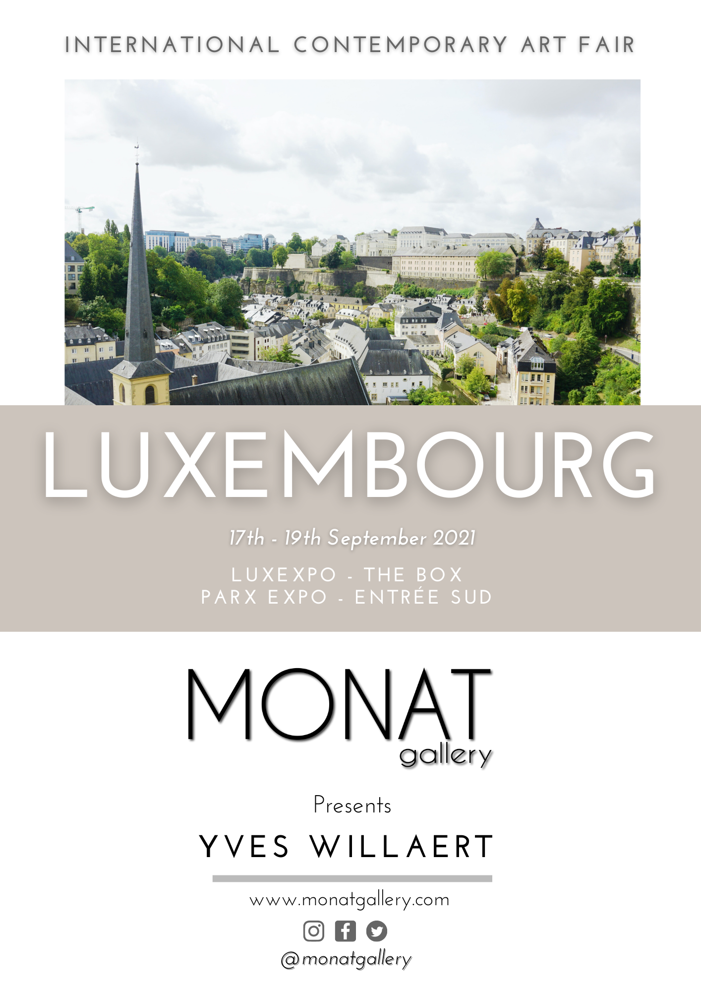 La galerie Monat Gallery de Madrid a invité Yves Willaert à présenter des œuvres à la Foire Internationale d'Art Contemporain de Luxembourg qui se tient du 17 au 19 septembre 2021.