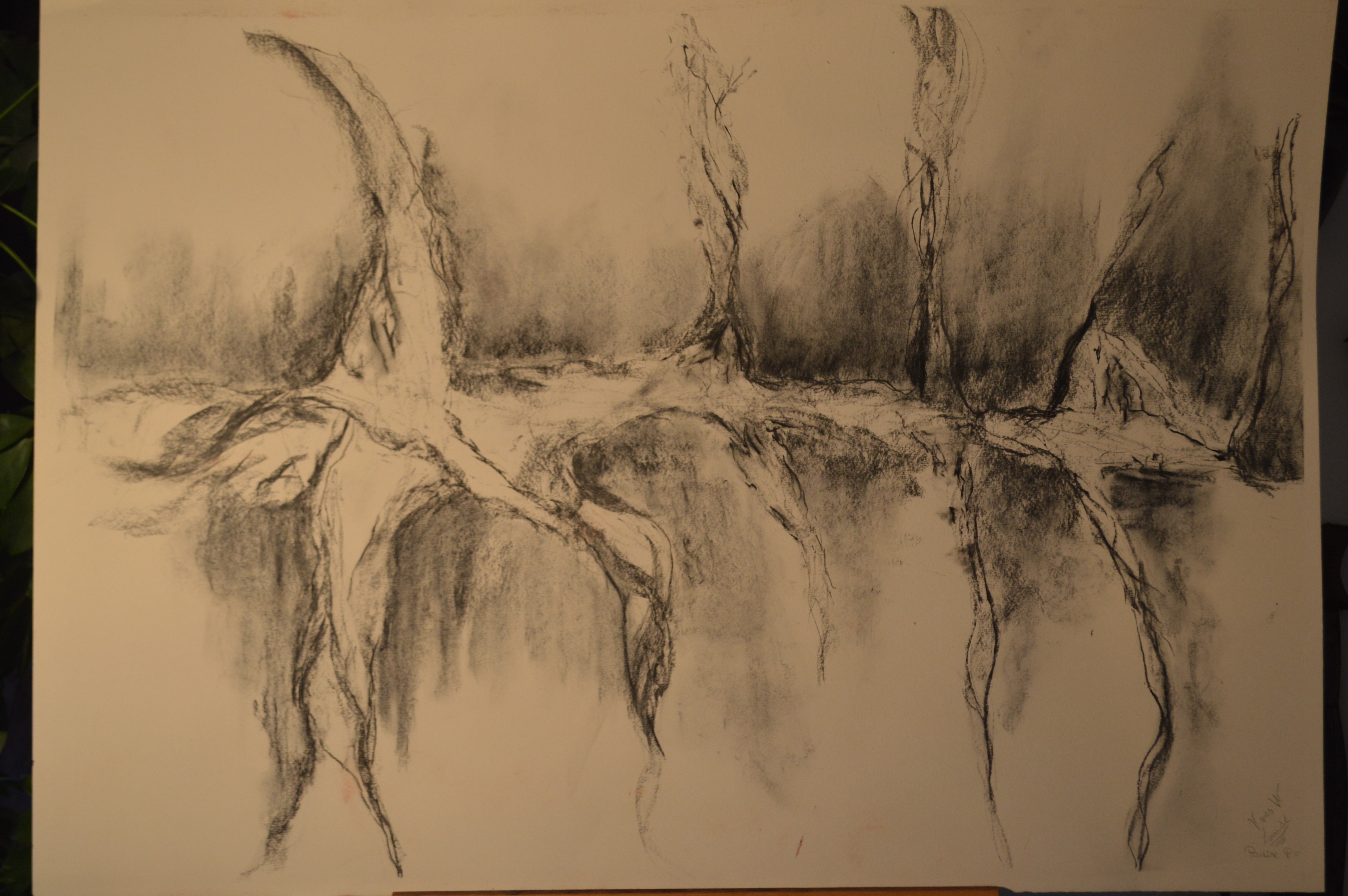 Sans titre 2015 Fusain (avec Pauline et Louise P.) (100x70 cm)
